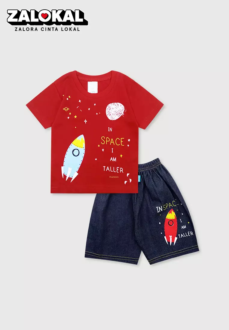 WAKAKIDSWakakids Setelan Bayi Laki Laki Baju Lengan Pendek Anak Usia 6 Bulan Hingga 12 Bulan Set Celana Jeans Motif Rocket 3146 Merah174900.0066000.00