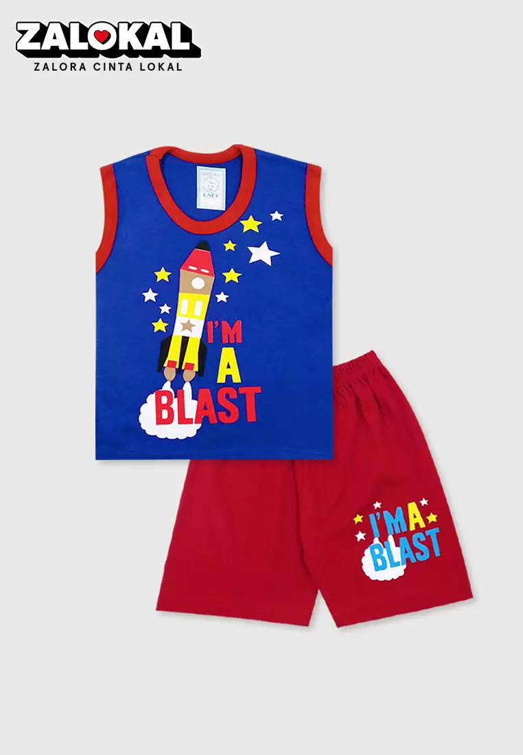 WAKAKIDSWakakids Setelan Bayi Laki Laki Baju Singlet Anak Usia 6 Bulan Hingga 12 Bulan Set Celana Kaos Motif Rocket 3129 Biru158900.0062100.00