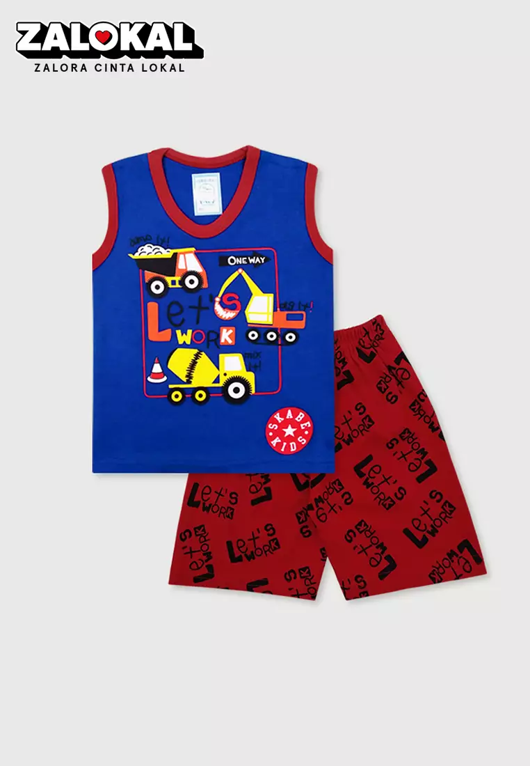 WAKAKIDSWakakids Setelan Bayi Laki Laki Baju Singlet Anak Usia 6 Bulan Hingga 12 Bulan Set Celana Kaos Motif Tractor 3125 Biru163900.0068600.00