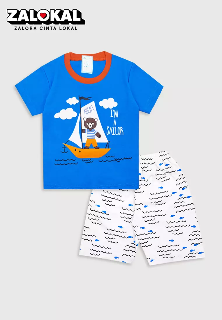 Wakakids Setelan Bayi Laki Laki Usia 12 Bulan Hingga 18 Bulan Set Baju Anak Celana Kaos Motif Bear Sailor 3411 Turkis