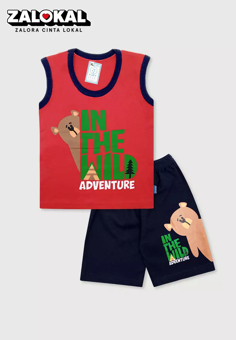 WAKAKIDSWakakids Setelan Bayi Laki Laki Usia 12 Bulan Hingga 18 Bulan Set Baju Singlet Anak Celana Kaos Motif Bear Wild 3404 Merah163900.0062800.00