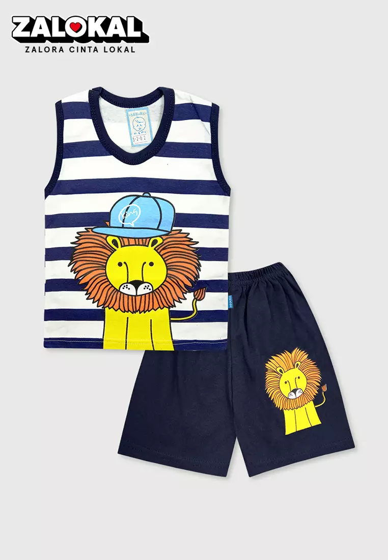 WAKAKIDSWakakids Setelan Bayi Laki Laki Usia 6 Bulan Hingga 12 Bulan Baju Singlet Stripe Motif Lion Celana Kaos 3202 Navy158900.0060300.00