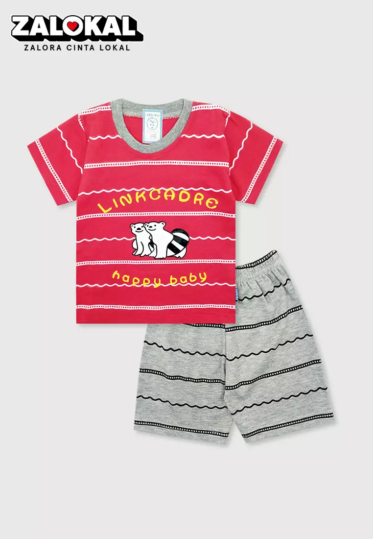 Wakakids Setelan Bayi Laki Laki Usia 6 Bulan Hingga 12 Bulan Set Baju Anak Celana Kaos Motif Bear Twins 3183 Merah