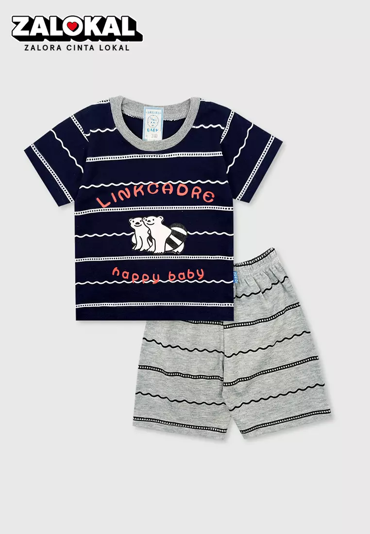 Wakakids Setelan Bayi Laki Laki Usia 6 Bulan Hingga 12 Bulan Set Baju Anak Celana Kaos Motif Bear Twins 3183 Navy