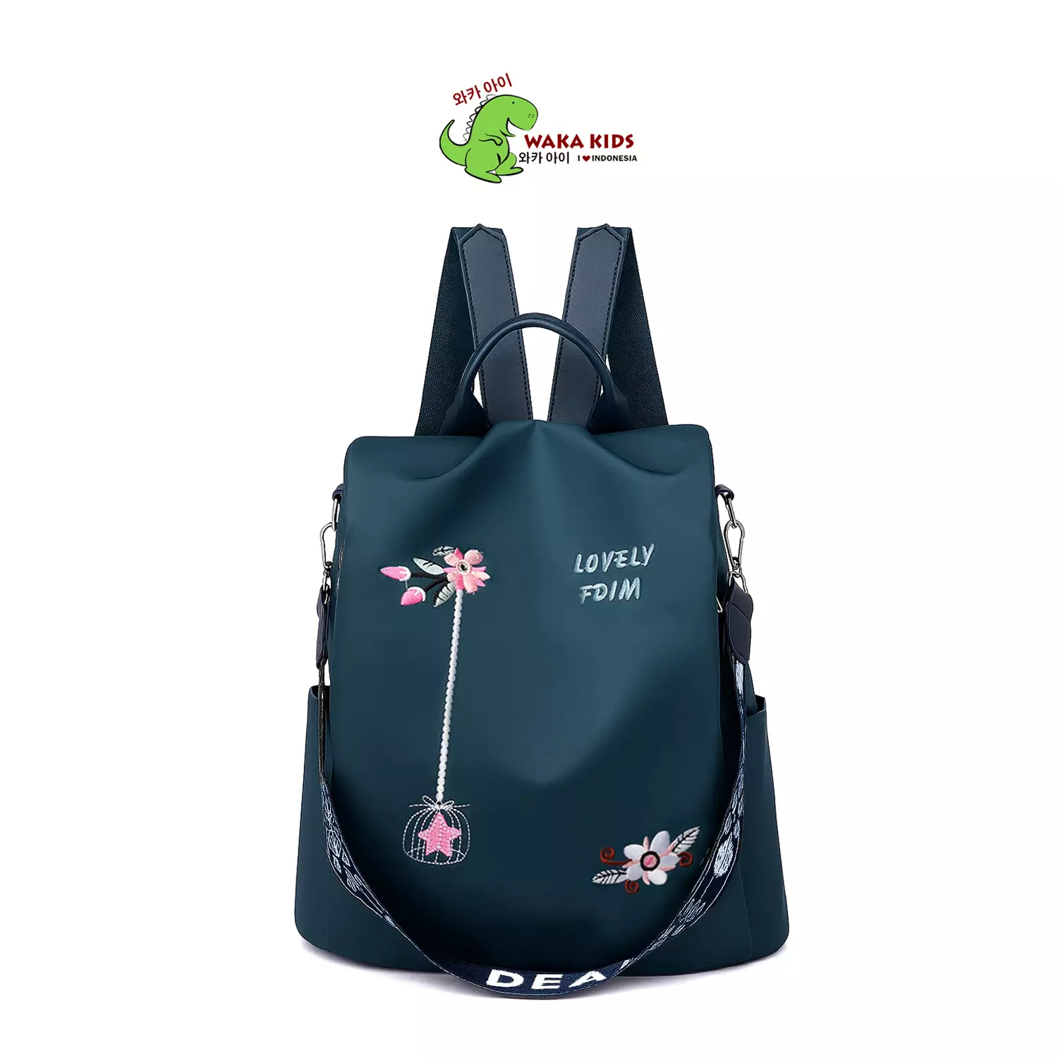 WAKAKIDSWakakids Tas Backpack Wanita 2in1 Ransel dan Selempang Lovely Flowers Anti Maling dan Air Venrz Navy194000.00100900.00