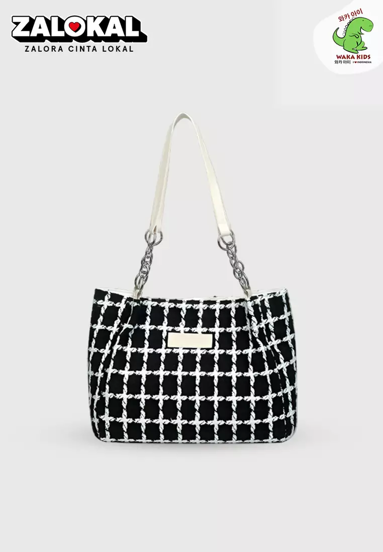 WAKAKIDSWakakids Tas Wanita Bahu Shoulder Bag Tote Bag Bahan Kain Tweed Plaid Pattern Venrc Hitam161000.0083900.00