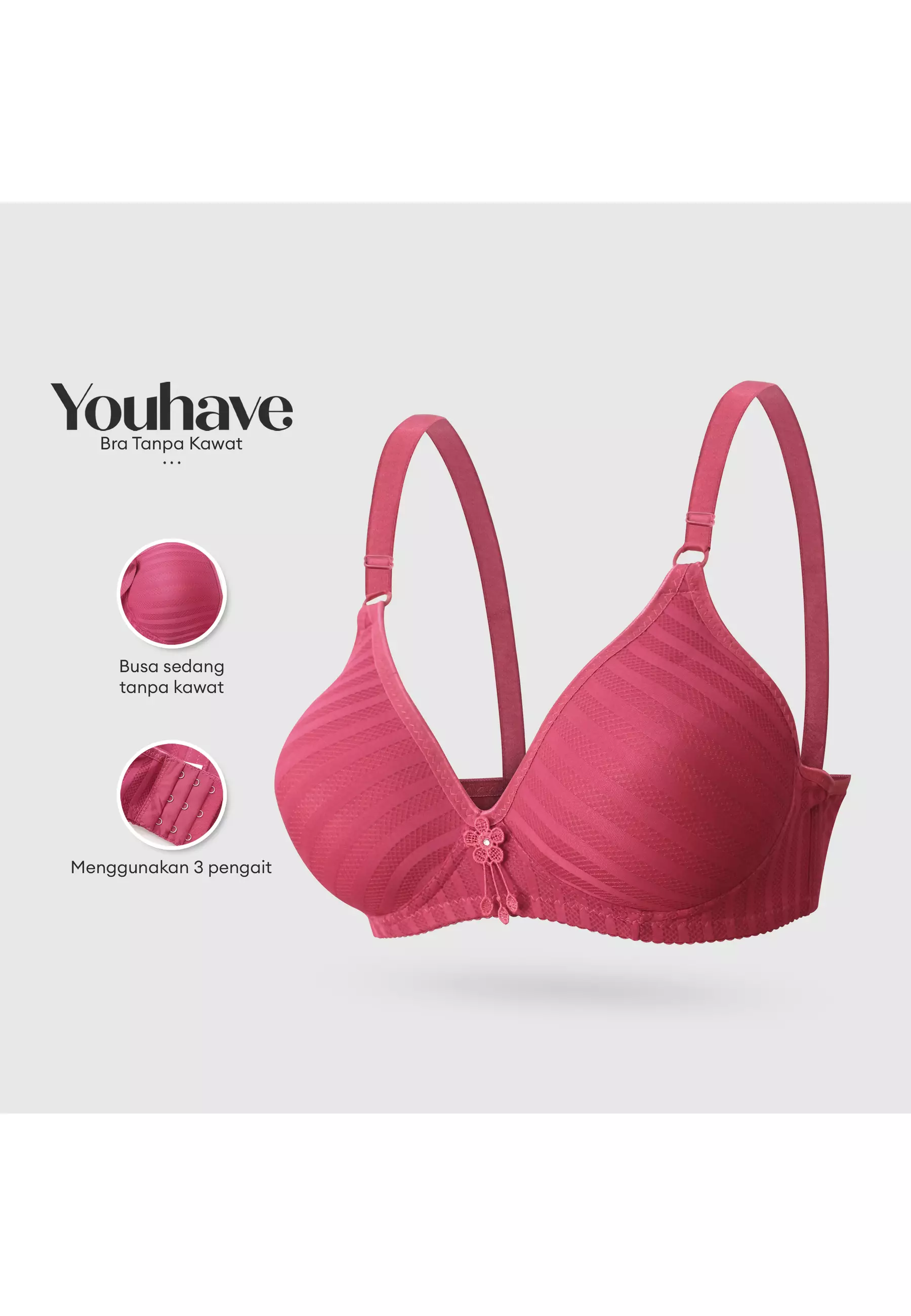 WimiuWimiu BH Bra Wanita BH Tanpa Kawat Busa Tipis Motif Garis Jaring 100111259000.0036900.00