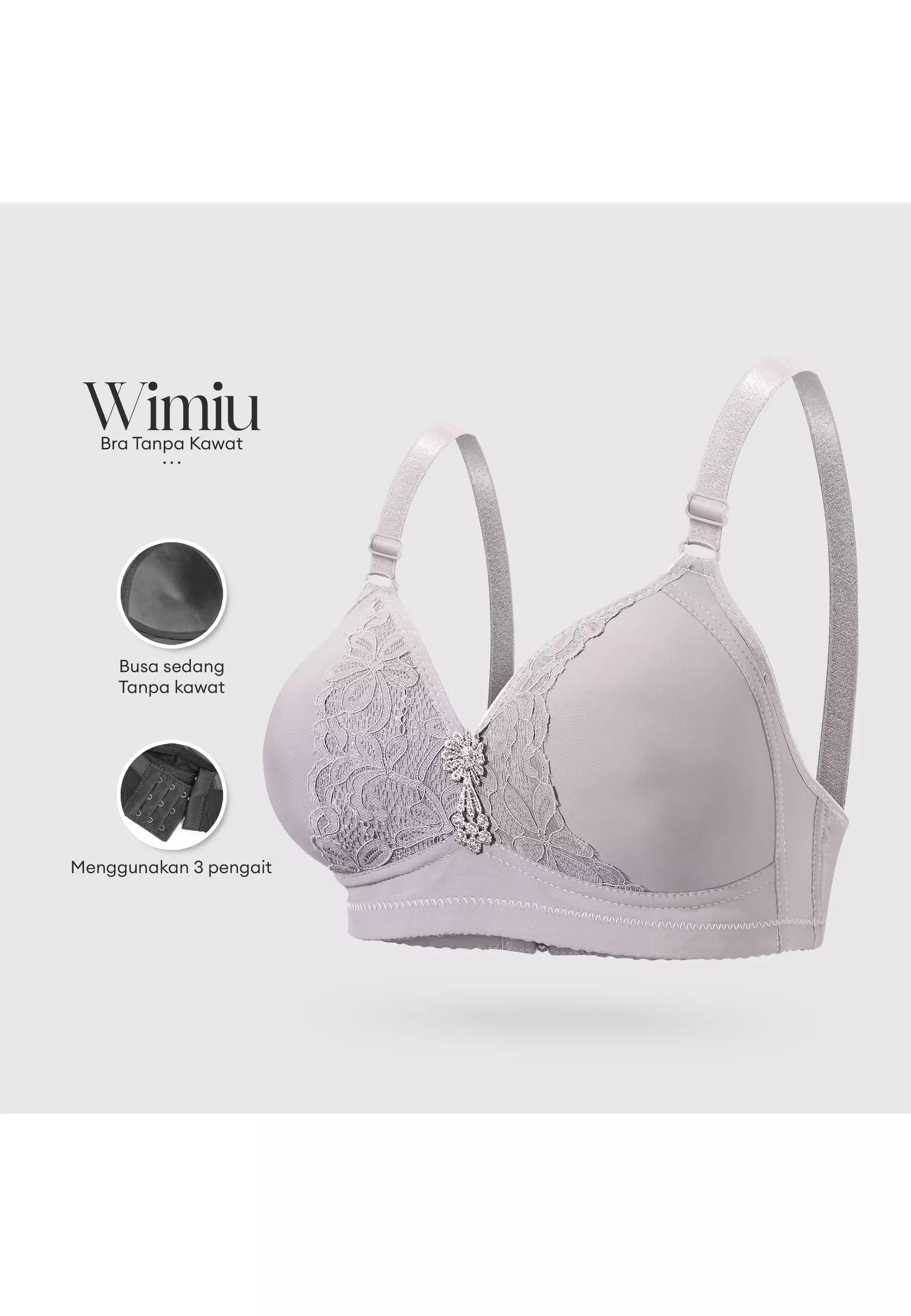 Wimiu BH Bra Jumbo Wanita Tanpa Kawat Cup C D Jumbo Motif Depan Brukat Bunga Beha Besar Woman Women 100215