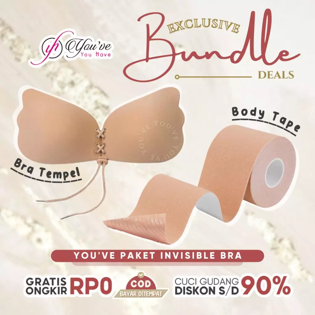YouhaveYOU'VE ( YOUHAVE) PAKET HEMAT BRA TEMPEL PREMIUM 033683 1PCS + 1PCS BODY TAPE NIPPLE COVER BRA TANPA TALI 033676990000.00