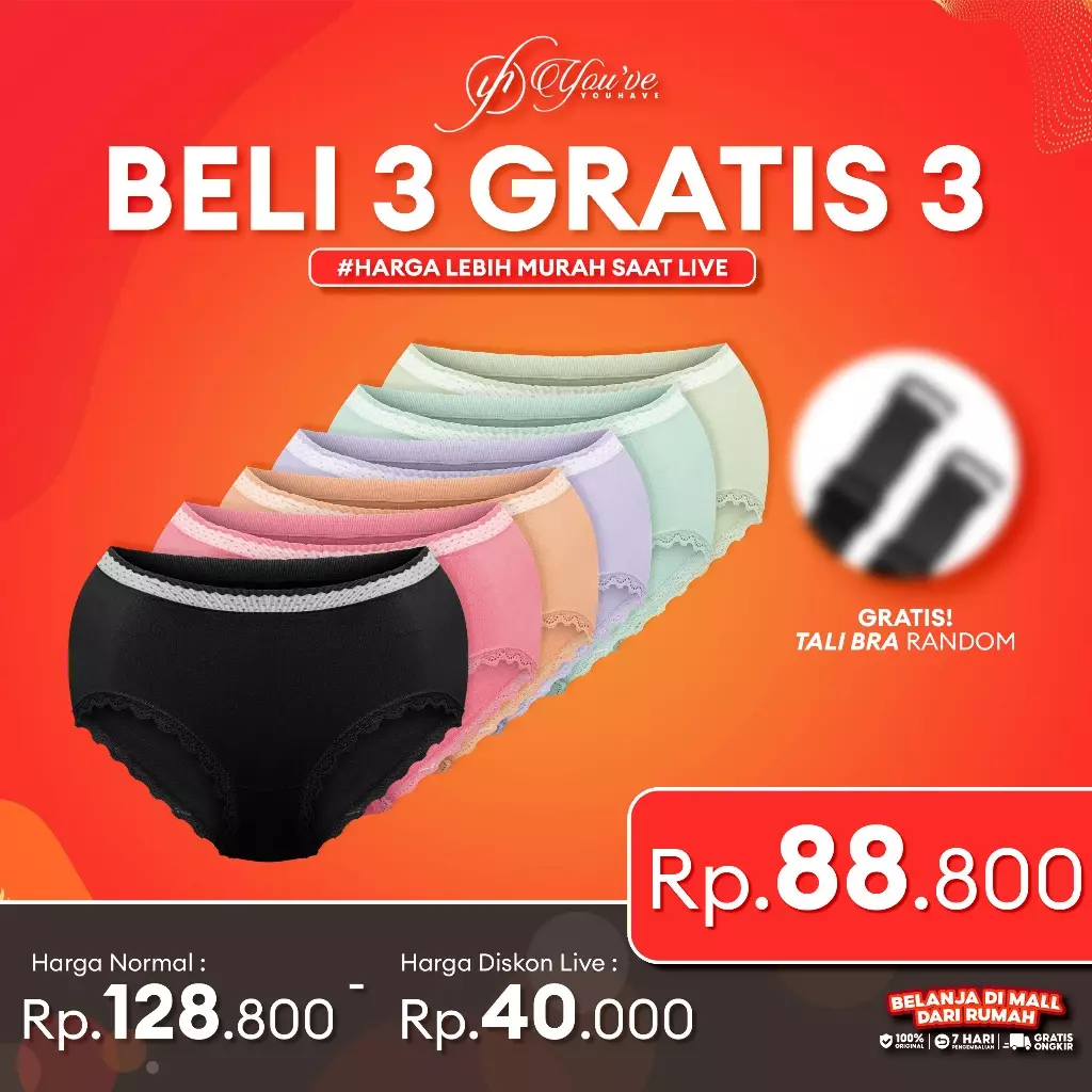 YouhaveYOUHAVE BELI 3 GRATIS 3 PCS LIVE EXCLUSIVE CD PREMIUM CELANA DALAM PANTY PAKAIAN DALAM WANITA 300038999900.00