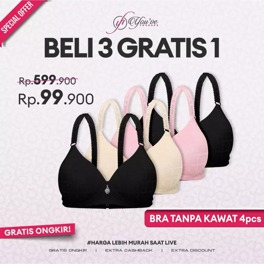 YouhaveYOUHAVE PAKET BELI 4 BH WANITA BRA WANITA BUSA TIPIS TANPA KAWAT 100075599900.00157920.00