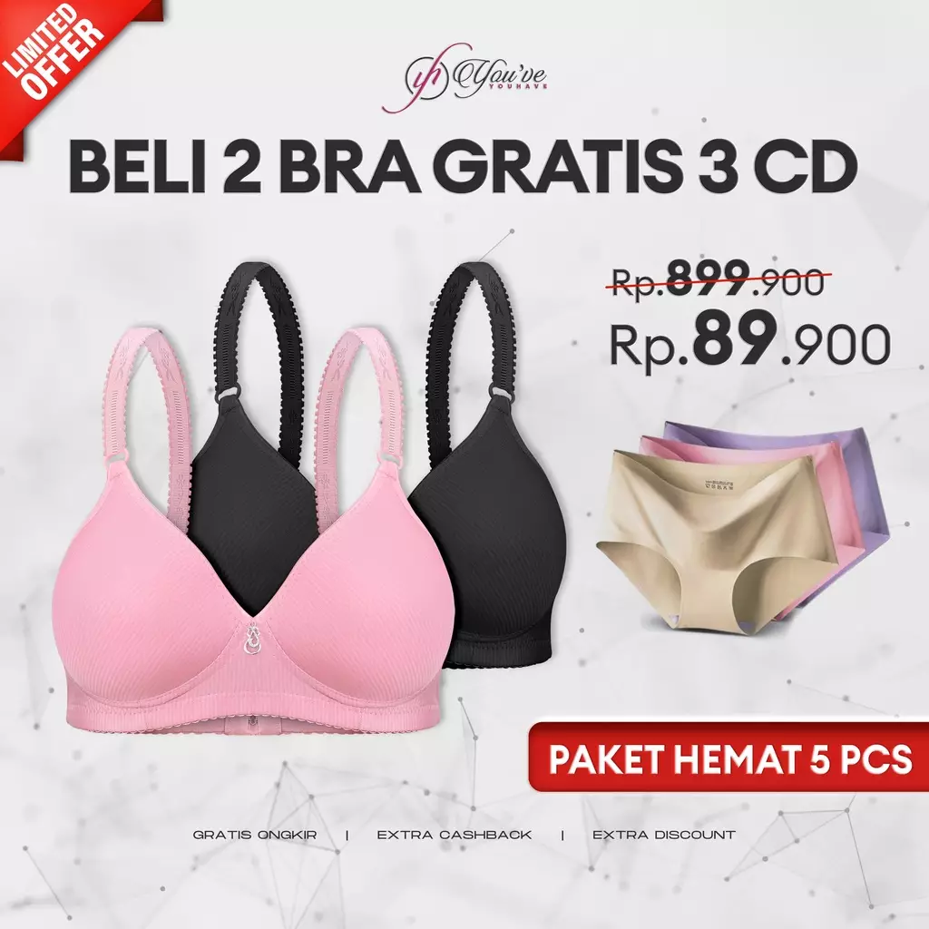 YouhaveYOUHAVE PAKET HEMAT 2 PCS BRA 1231 GRATIS 3 PCS CD SEAMLESS C920 3 BUNDLE BRA WANITA CELANA DALAM WANITA CANGCUT WANITA899900.00137520.00