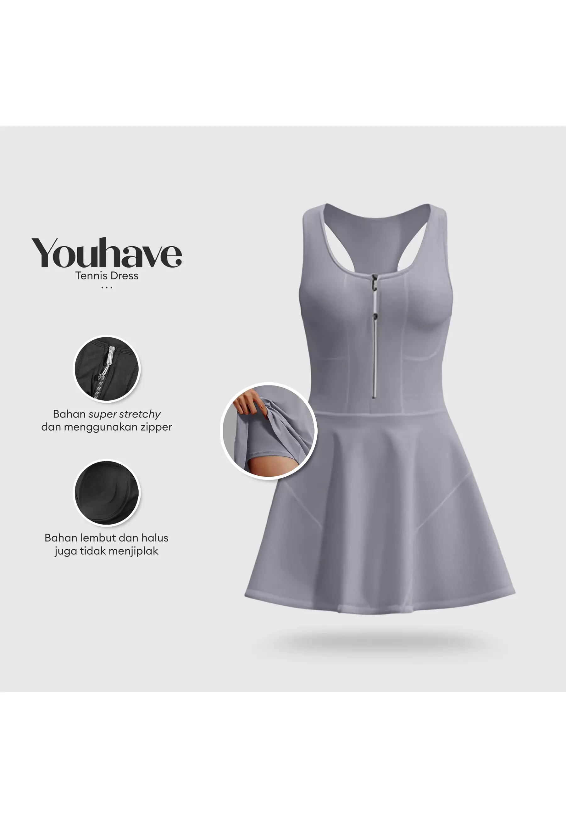 YouhaveYouHave (You’ve) Tennis Dress White Sport Setelan Dress Pakaian Olahraga Wanita Jumpsuit Wanita Workout Gym Yoga include cup bra and short Sportwear Set Wanita Y00011599990.00297800.00