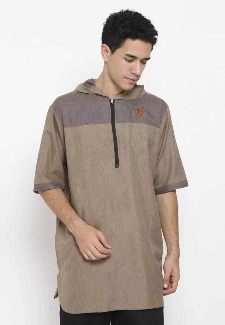 Zayidan Baju Koko Gamis Muslim Pria Faiq Hoodie - Khaki