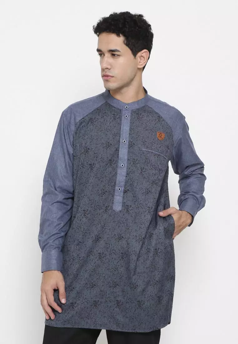 Zayidan Baju Koko Gamis Muslim Pria Fudail Pjg - Biru Motif