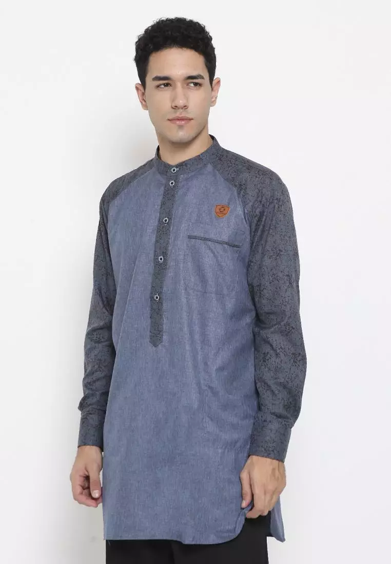 Zayidan Baju Koko Gamis Muslim Pria Fudail Pjg - Biru Polos