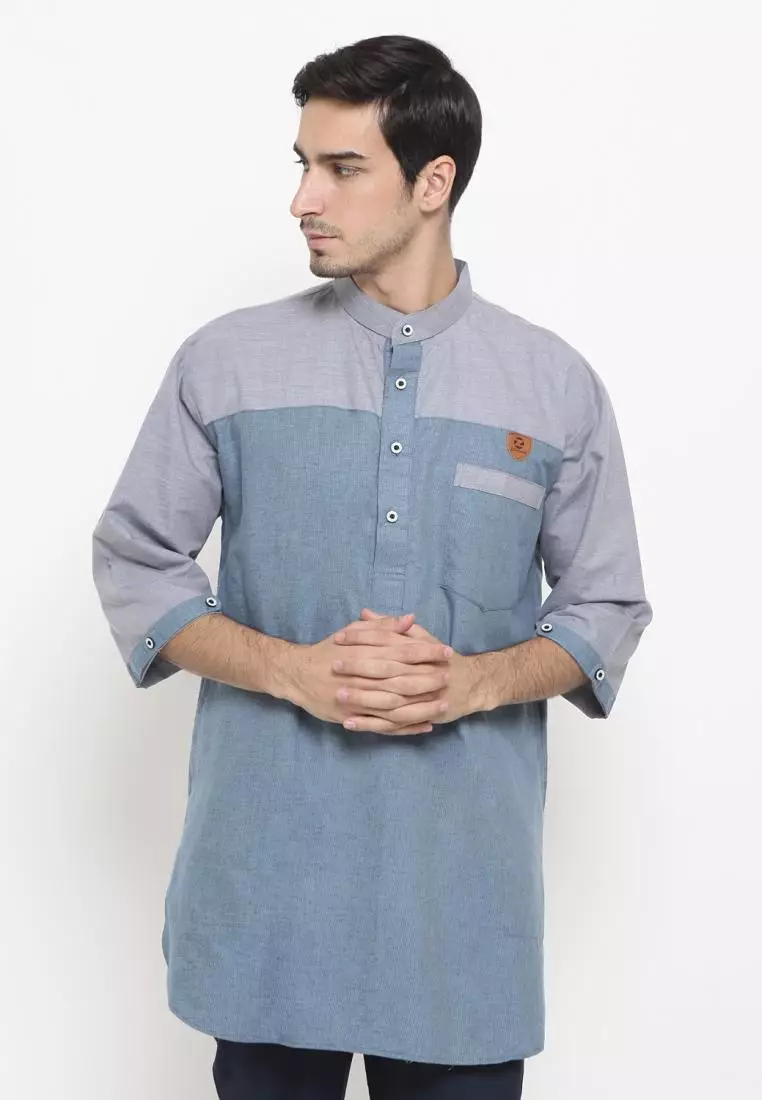 Zayidan Baju Koko Gamis Muslim Pria Tamam - Biru Abu