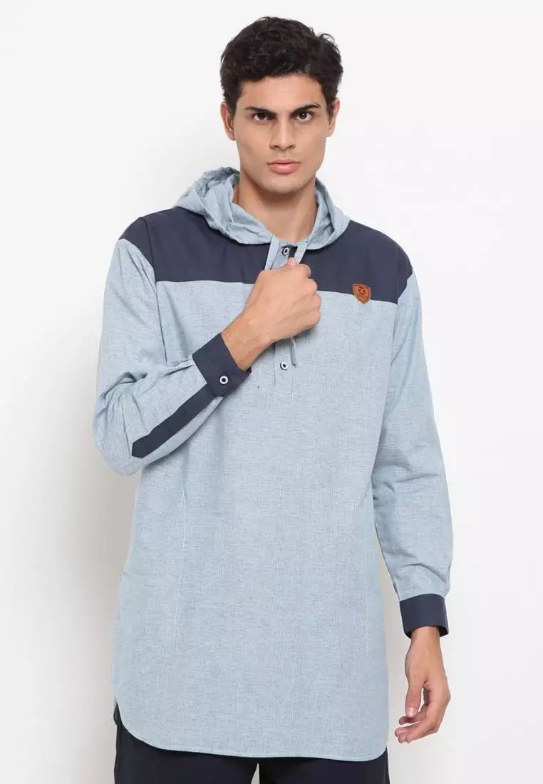 Zayidan Baju Koko Gamis Muslim Pria Zubair Hoodie - Bluesky