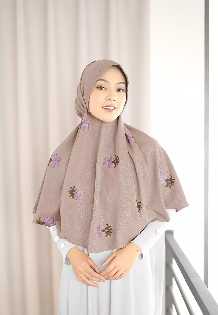 zelenaZelena - Ghinna Bergo Embroidered | Hijab Instan Tali Airflow - Cocoa Cupcake214750.0098120.00