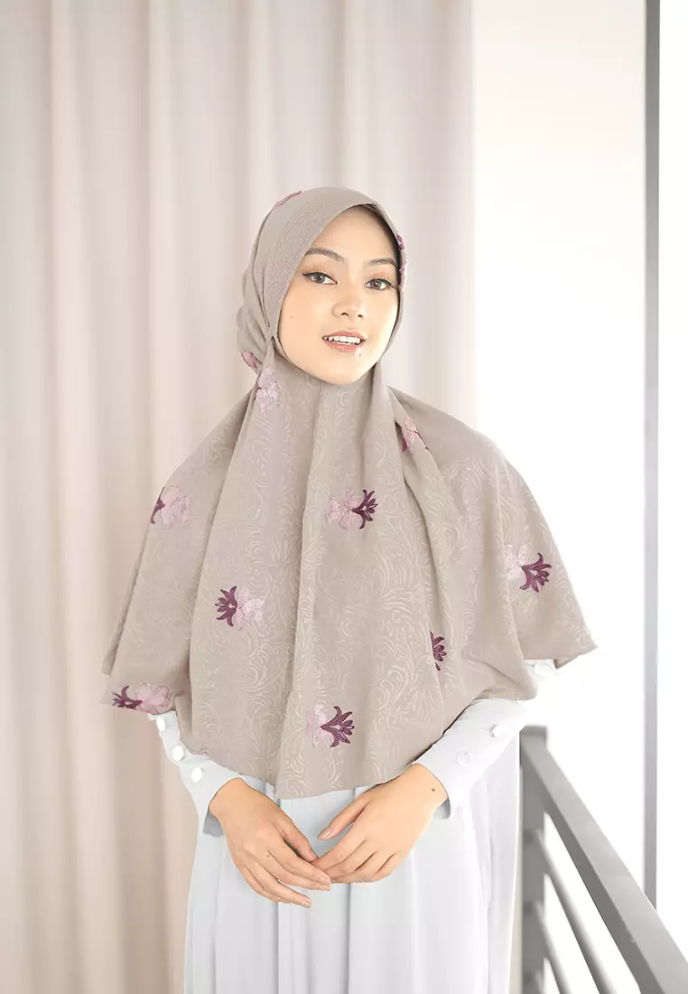 zelenaZelena - Ghinna Bergo Embroidered | Hijab Instan Tali Airflow - Rosy Brown214750.0098120.00