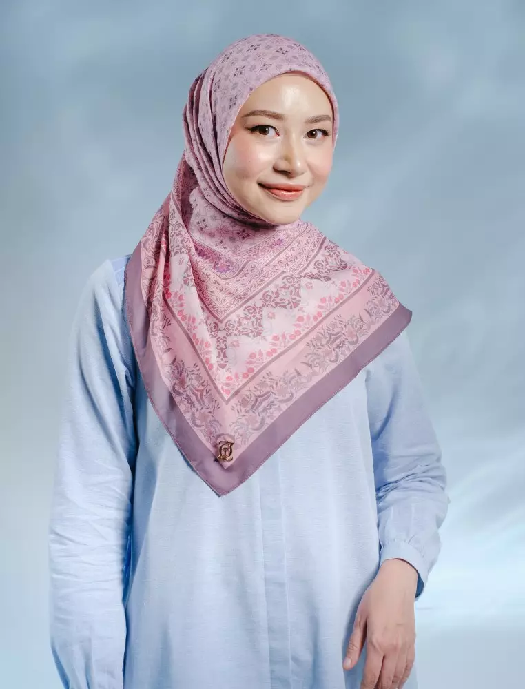 CLIDIA Scarf Maroon - Kerudung Hijab Segiempat Motif With BOX - Bahan Nesla - Ukuran 115x115
