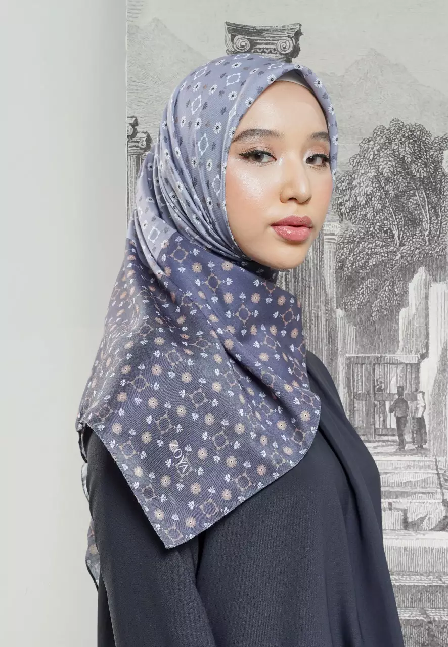 ZOYADAXA Scarf Dark Grey - Kerudung Hijab Segiempat Motif With Pouch - Bahan Poly Fine - Ukuran 110x11066750.00
