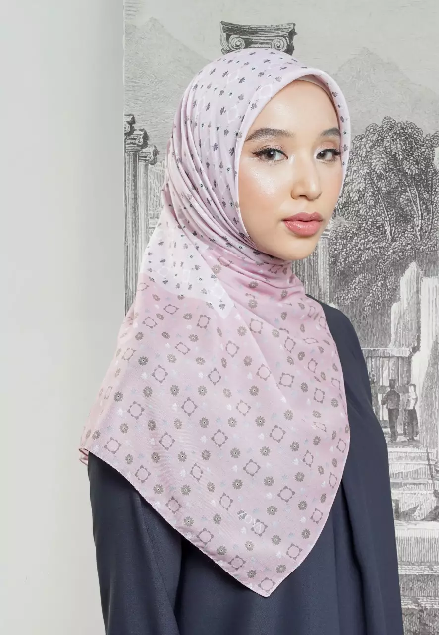 ZOYADAXA Scarf Dusty Pink - Kerudung Hijab Segiempat Motif With Pouch - Bahan Poly Fine - Ukuran 110x11066750.00