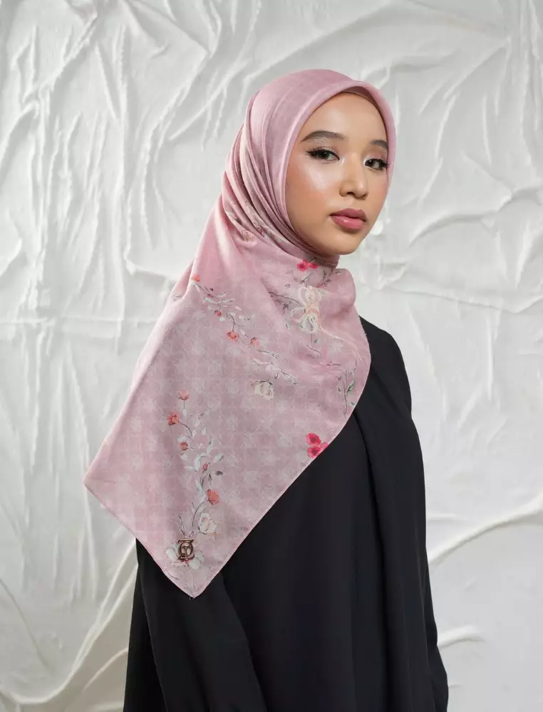FLEUR Scarf Rose Tan - Kerudung Hijab Segiempat Motif With BOX - Bahan Nesla - Ukuran 115x115