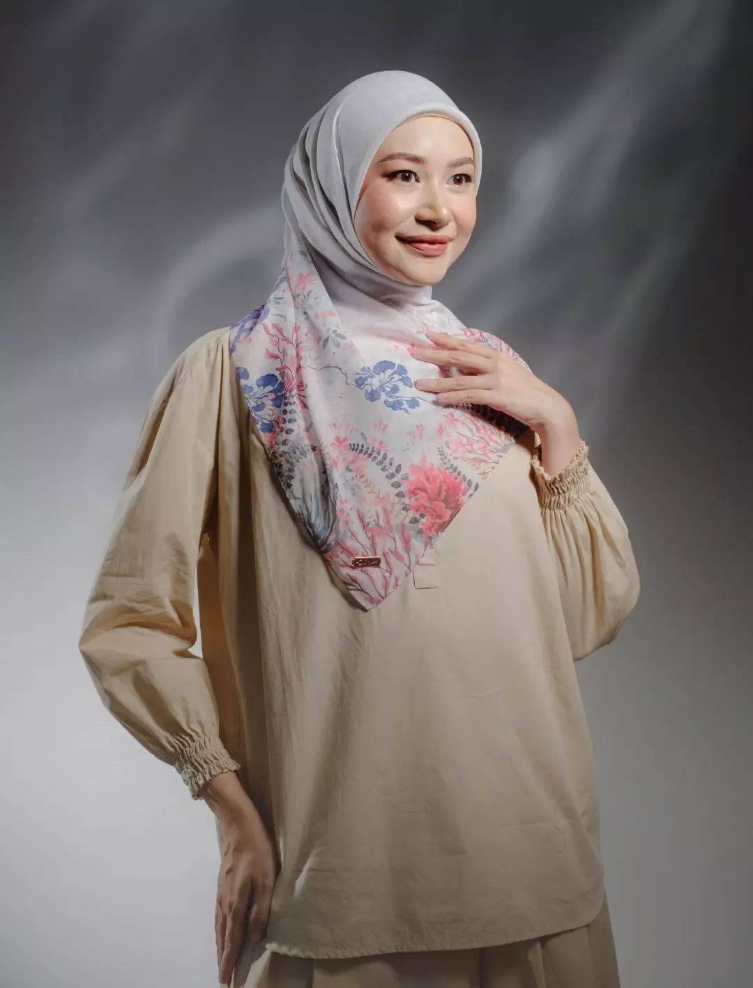 ZOYAMARINA Scarf Offwhite - Kerudung Hijab Segiempat Motif With BOX - Bahan Voal Premium - Ukuran 115x115141750.00