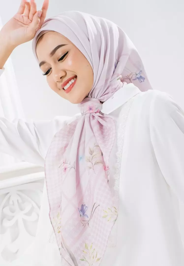 NUWARA Print Scarf Pink - Kerudung Hijab Segiempat Motif With BOX - Bahan Nesla - Ukuran 115x115