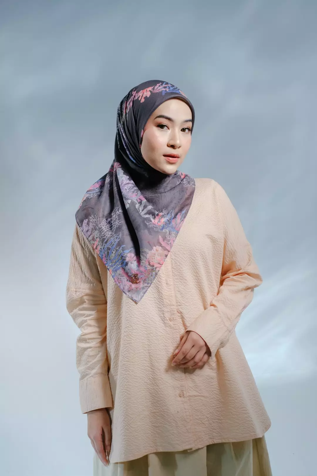 PELAGIA Scarf Black - Kerudung Hijab Segiempat Motif With BOX - Bahan Nesla - Ukuran 115x115