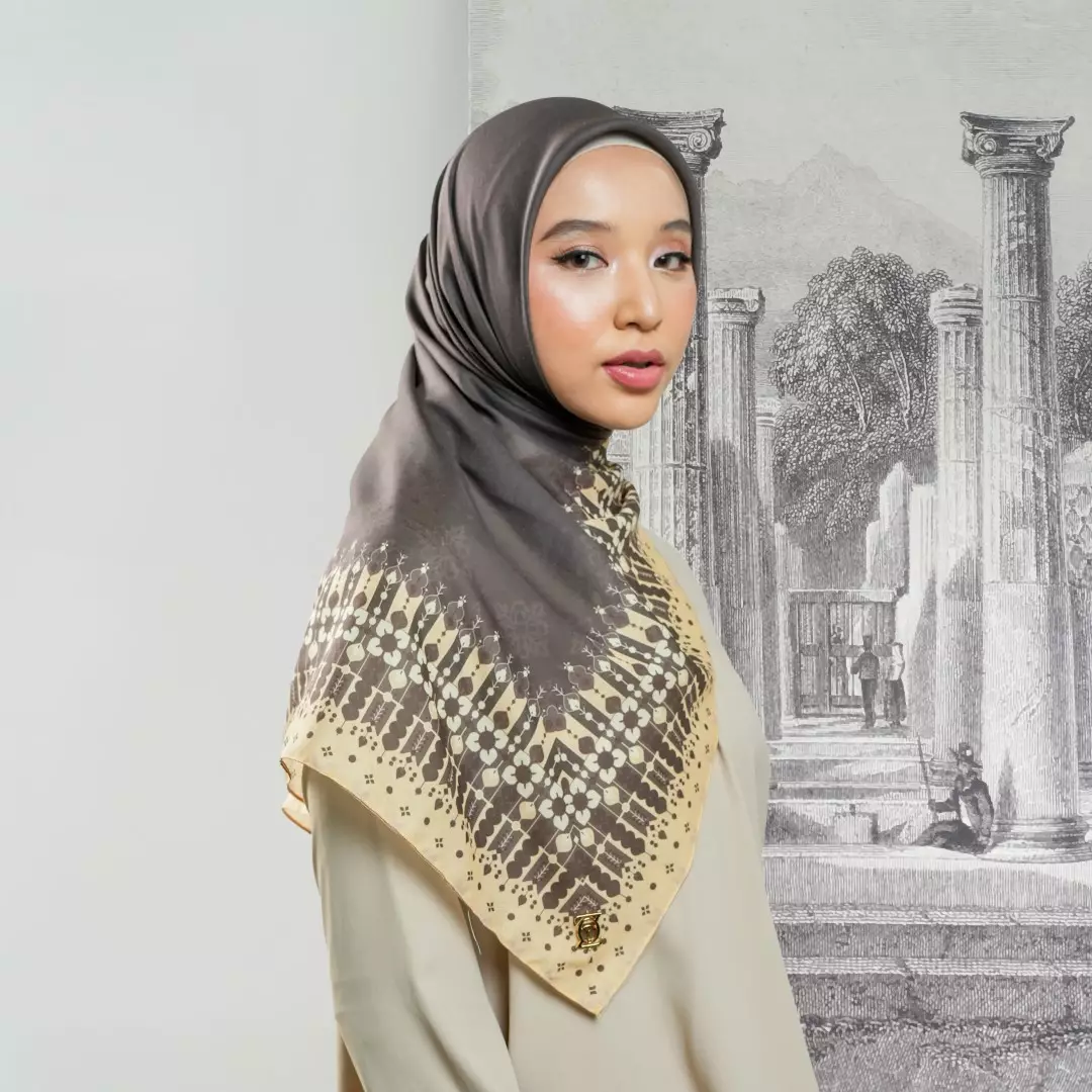 ZOYARANU Print Scarf Brown - Kerudung Hijab Segiempat Motif With BOX - Bahan Nesla - Ukuran 115x115111750.00