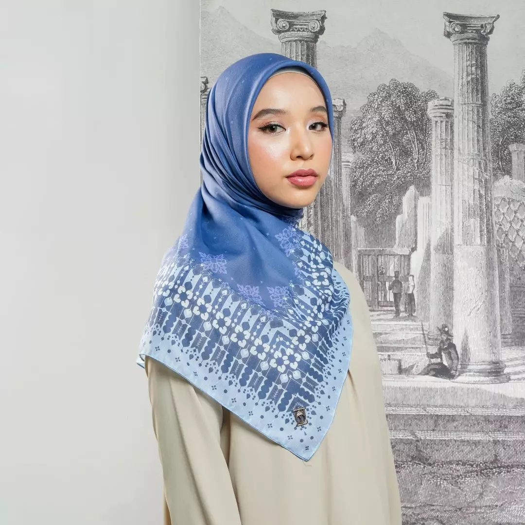 ZOYARANU Print Scarf Navy - Kerudung Hijab Segiempat Motif With BOX - Bahan Nesla - Ukuran 115x115111750.00
