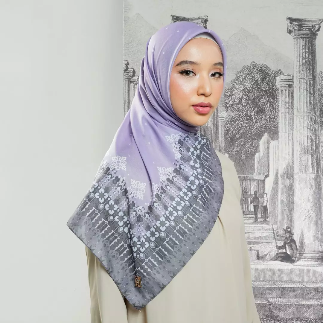 ZOYARANU Print Scarf Purple - Kerudung Hijab Segiempat Motif With BOX - Bahan Nesla - Ukuran 115x115111750.00
