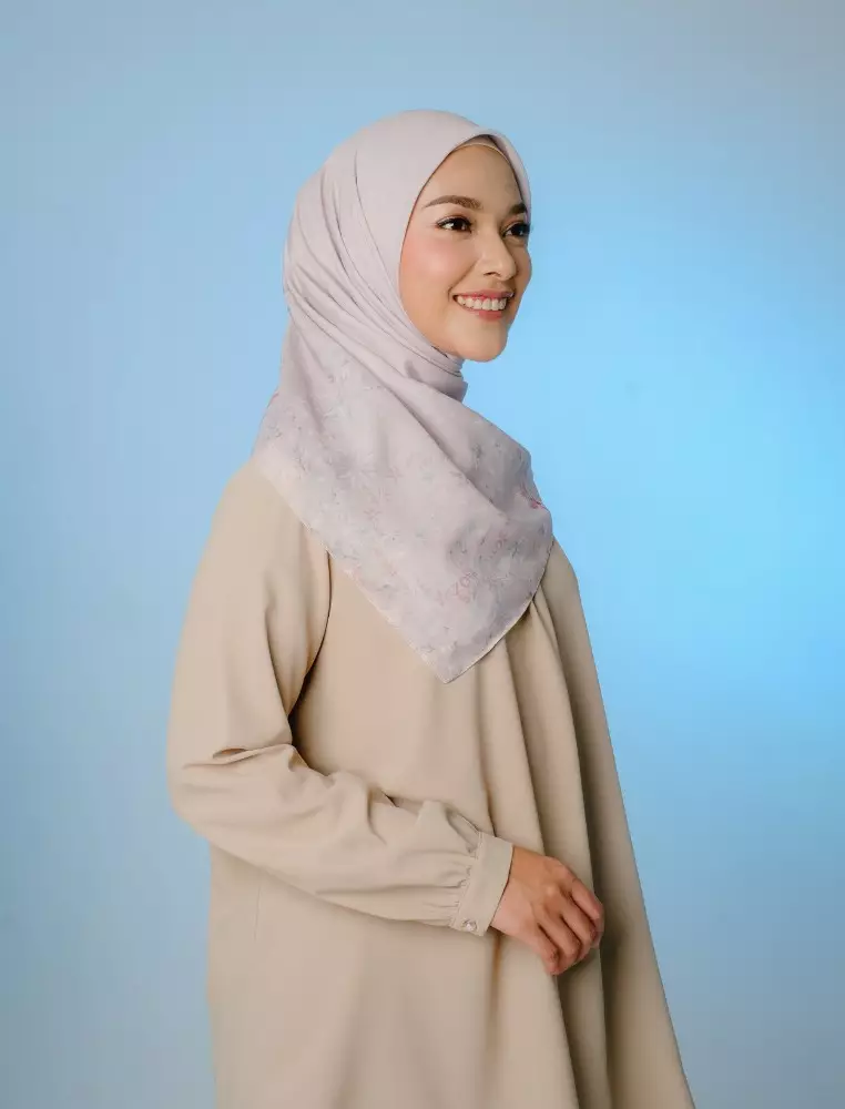 ZANIAH Scarf Cream - Kerudung Hijab Segiempat Motif With Pouch Ziplock - Bahan Poly Fine - Ukuran 110x110
