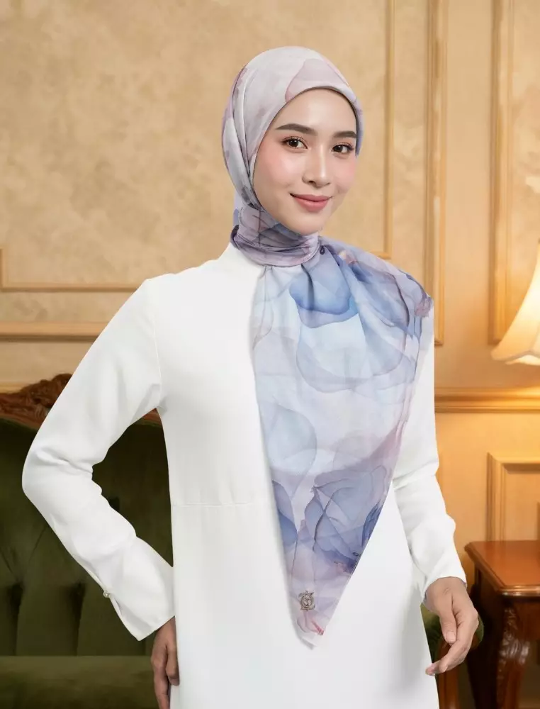 Zyla Print Scarf Blue - Kerudung Hijab Segiempat Motif Premium - Box
