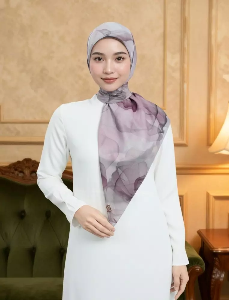 Zyla Print Scarf Mauve - Kerudung Hijab Segiempat Motif Premium - Box
